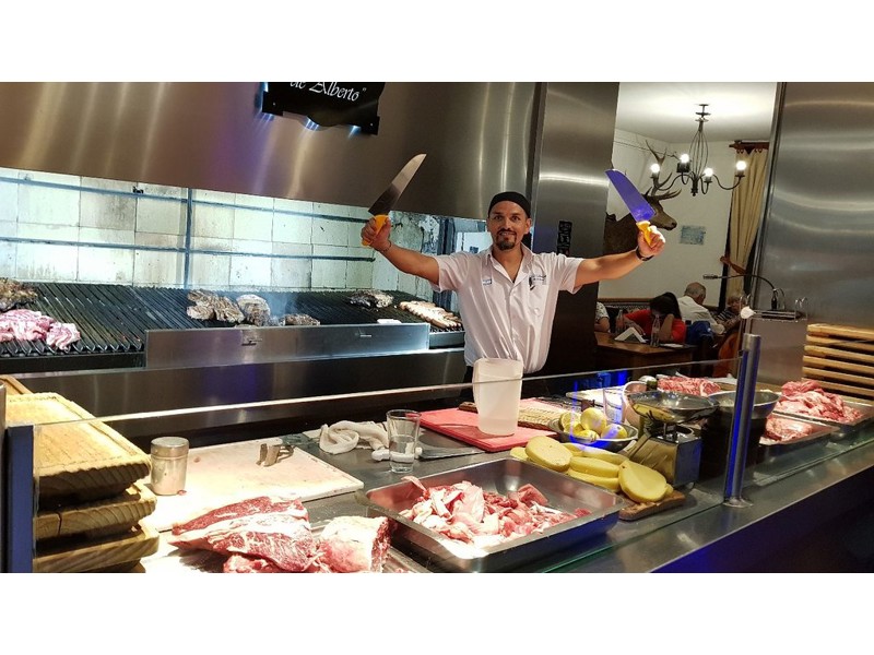 Impressionante la spianata di brace e la gran quantità di carne che viene gestita. I camerieri stessi si occupano della preparazione e cottura degli ordini che hanno preso. Il locale è grande ma un po' squallido; il personale non molto cortese, in compenso la carneè buona e le porzioni sono enormi. La birra mediocre. Forse è una catena perchè ci sono ristoranti che portano lo stesso nome.
