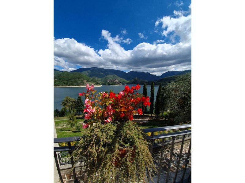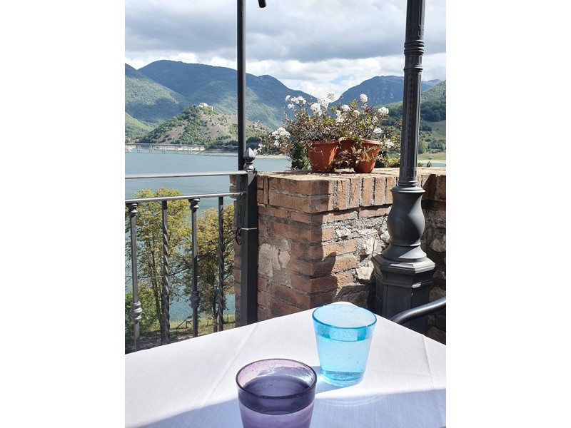 Tavoli su terrazzo con vista lago e sotto gli alberi. Ottimi primi, ravioli ricotta e spinaci, fregnacce alla sabinese, tagliatelle ai porcini. Carne di qualità, in particolare gli arrosticini, Dolci fatti in casa. Gentili i camerieri.
