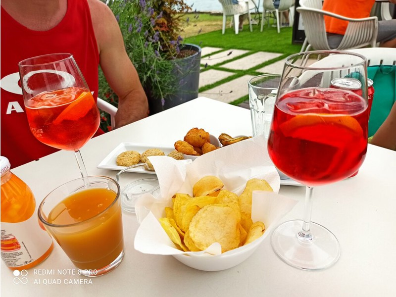 Sicuramente merita la location proprio sul lago. Aperitivi nella norma, così come stuzzichini. Incentiverei un po’ di la qualità degli stucchini.
