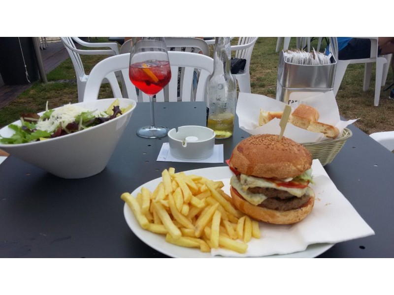 Dopo il vittoriale un pranzo al volo a base di hamburger e patatine. Hamburger carta bianca troppo ricco di salsa barbecue: non si distinguevano gli altri sapori. Patatine a barchetta molto buone. Personale gentile ma tempi di attesa davvero troppo lunghi per una proposta essenzialmentea base di fast-food. Location graziosa sulla riva del lago, si può apprezzare il tramonto.