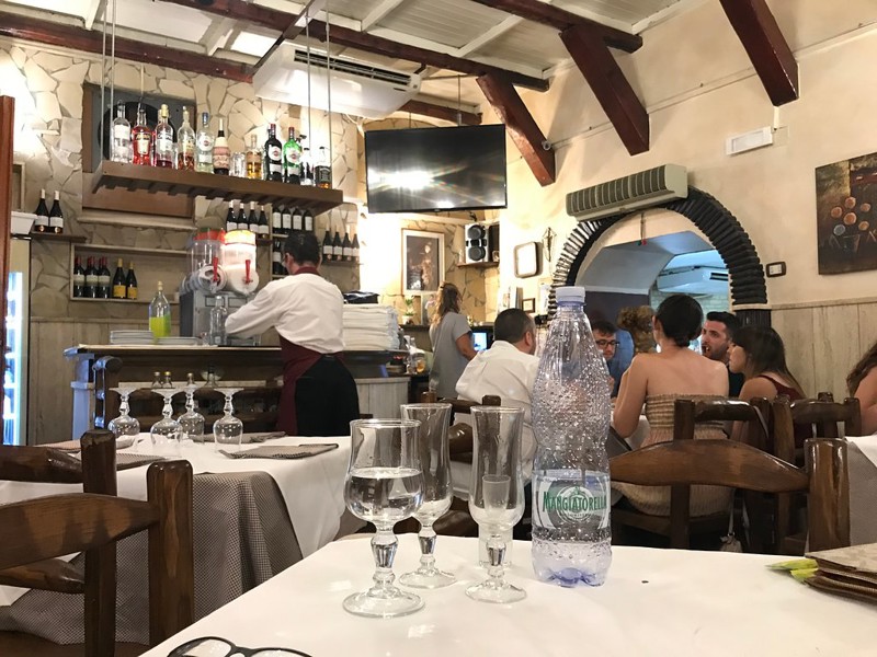 Entriamo una sera di pioggia perché tutti gli altri locali erano pieni, coscienti del fatto che sia un ristorante turistico, ma pazienza. Entriamo ed è una follia: ci fanno sedere proprio davanti all’ingresso, i camerieri sfrecciano ovunque scontrandosi tra di loro e contro le sedie,si urlano da un lato all’altro della sala, sembrano sotto l’effetto di cocaina perché sono delle schegge impazzite. Quella che credo sia la titolare controlla con fare guardingo dalla cassa e non metto in dubbio che i poveri camerieri siano costretti a lavorare a quei ritmi folli. Inoltre ti chiedono volte se hai finito e se possono portarti via il piatto: ti viene veramente da mangiare di fretta e furia, con l’ansia di alzarsi e andarsene da quella confusione atroce che mette agitazione e crea ansia. Non fai in tempo ad alzarti che ti sparecchiano il tavolo e fanno accomodare le persone in attesa, scommetto che le persone dopo di me hanno trovato la sedia ancora bella calda perchè credo si siano seduti letteralmente 45 secondi netti da quando mi sono alzata io. Il cibo inoltre non era neanche un granché, la tipica cucina turistica di mediocre qualità, ma niente a che vedere con il servizio, la nota veramente amara di questo locale. NON CI ANDATEEEEE