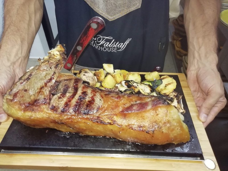 Io ed il mio ragazzo abbiamo deciso di cenare da Falstaff in quanto amatori di carne. Abbiamo scelto una ribeye australiana ed una ribeye di Bisonte canadese; la prima servita con patatine fritte, la seconda con patate al forno. Sapendo che sarebbero state servite supietra, le abbiamo volute al sangue. La cottura era perfetta, il sapore magnifico. Per gusto personale, abbiamo preferito la ribeye di Bisonte, ma entrambe erano squisite. I contorni buoni, e anche lì, per gusto personale, abbiamo preferito le patatine fritte. Il personale davvero professionale, il proprietario disponibile ed amichevole. Vivendo a Londra, ed avendo il padre Head Chef, mangio in un certo modo, specialmente la carne, e posso dire che Falstaff merita una recensione da 5 stelle. Di certo, quando sarò a Palermo (è pur sempre casa mia) , torneremo sicuramente per provare la carne di Kobe.