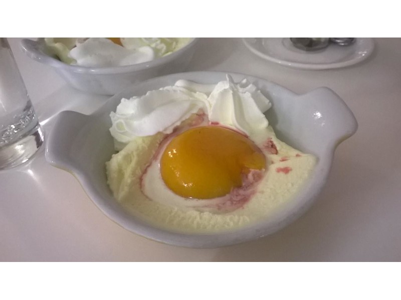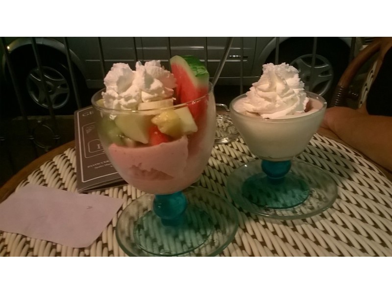 Siamo stati nella gelateria Felice. La prima volta: coppetta gelato alla frutta. Buono il sapore! Da ripetere. Certo avrebbero potuto esser meno "tirati" con le quantità: il livello di gelato arrivava appena all'altezza della coppetta. Seconda volta: abbiamo ordinato un dessert monoporzione. Un tiramisù (prezzo3.5€ sul menù) ed una meringata (prezzo 4€ sul menù). Il tiramisù: buono, soprattutto la parte col caffè, sottotono la crema al mascarpone, porzione scarsa, servito in un bicchierino di plastica. La meringata: buona ed originale la variante con gelato alla crema al limone, abbondante la porzione, servita in un piattino di ceramica senza alcuna decorazione. Alla cassa, conto arrotondato verso l'alto. Figuretta evitabile.
