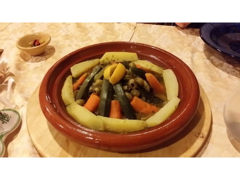 Mercoledì sera ci siamo offerte una cena dai sapori magrebini. Abbiamo lasciato carta bianca al cuoco che ci ha preparato una serie infinita di antipasti molto buoni. Poi ci ha proposto la pastilla che è una figata! Adoro i contrasti dolce e salato!!! Avevamo concordatoil cou-cous, che mi immaginavo speziato e per concludere un digestivo the alla menta purtroppo non c'era spazio per il dolce. La cena mi è piaciuta molto perché le mie papille hanno assistito ad un concerto di sapori: il dolce con il salato, il piccante, l'agrodolce, le spezie tutto veramente buono! Ci tornerò per assaggiare il tajin! Il prezzo, era vergognosamente basso! E ha preparato pietanze senza problemi per l'amica vegetariana. Poi son molto gentili, non c'è che dire!