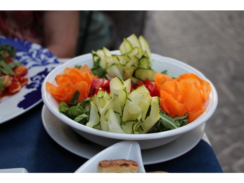 Non è un locale dove portare i propri bimbi perché non vi sono gli spazi adatti per la gestione, non è contemplato un menù specifico ed i tempi di attesa sono lunghi per la pazienza di un bimbo in quanto le pietanze vengono preparate sulmomento. Detto ciò è un ristorante per persone adulte e non un’osteria. La qualità della materia prima e delle pietanze eccellente ed il servizio è assolutamente impeccabile. Abbiamo mangiato all'aperto in un contesto tranquillo e ben distanziati dagli altri commensali. Abbiamo consumato 2 tortelli di zucca con condimenti diversi, la tartara di zucchine (brillante idea da provare a fare a casa propria) e delle verdure cotte. Il costo, compresa l’acqua, 2 bicchieri di vino ed un interessante Tiramisù servito in un calice, è stato di circa 70 €. Molto invitante il banco frigorifero dei salumi. Di sicuro sarà il nostro locale di riferimento per quando torneremo a Mantova.