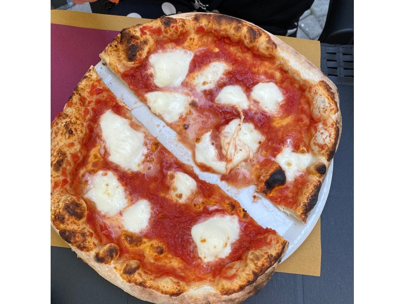 Classica pizza Napoletana con i bordi spessi. Impasto favoloso, morbida, molto gustosa e abbondante di ingredienti. Anche quando la congelo se avanzata da un pasto precedente una volta scongelata e messa in forno rimane sempre morbida e non come altre che rimangono secche e friabili.Per quanto riguarda il ristorante piccolo ma molto accogliente e pulito.