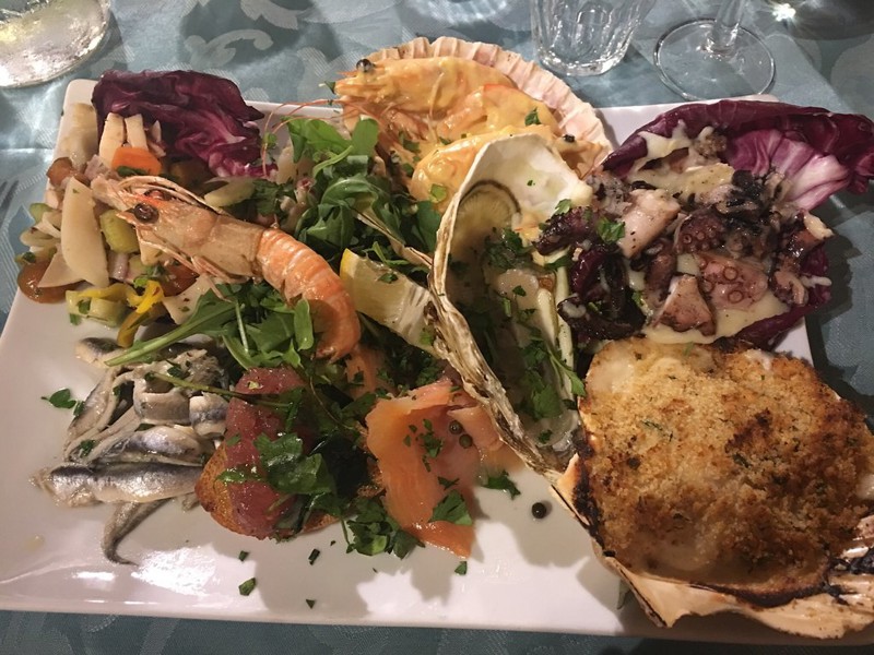 Ho prenotato x il pranzo di Pasquetta in questo ristorante x caso,dato che nella zona erano tutti pieni quelli che conoscevo. Esternamente non gli dai tanta stima,poi invece l'interno si è rivelato moto carino. Veniamo al cibo,abbiamo preso un raviolo di pesce per i bambiniinsipido come le nostre chitarrine allo scoglio. Nella norma gli antipasti,buone le cozze ed il salmone marinato in particolare. Quello che ha rovinato il nostro pranzo è stato il servizio molto poco professionale,gente arrivata dopo,servita prima di noi,lunghe attese sia per le portate che per le bevande. Capisco l'affluenza nei giorni di festa,anche se il locale non era pieno,ma basterebbe solo un po' di organizzazione.Il conto un po' alto per la qualità di ciò che si è mangiato. Lo sconsiglio.