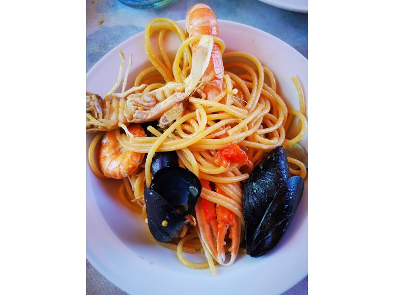 Il signore gentilissimo ci ha trovato un tavolo, venivano da porto Recanati per mangiare qui. Abbiamo mangiato davvero molto bene, antipasti misti freddi che non hanno nulla a che vedere con i soliti in giro, tutto fatto in casa insalata di seppe morbidissime e gustose,salmone marinato, bruschetta con Alice e una cozza gratinata che era la fine del mondo, ne avrei mangiate una teglia. Ottime linguine allo scoglio e davvero strepitoso il fritto misto. Si sente che il pesce è freschissimo. Dolce della casa vino e caffè abbiamo speso 25€ a testa. Ci torneremo sicuramente.