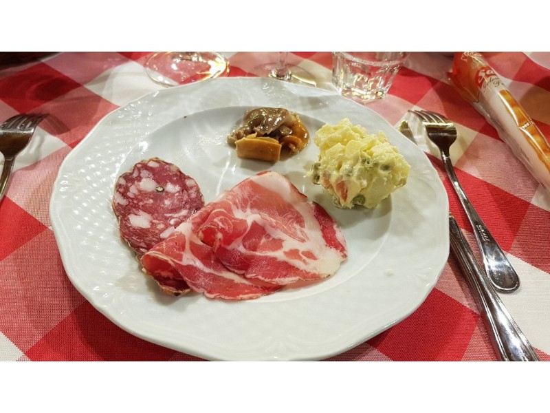 Sono stata con amici un giorno a pranzo. Eravamo 3 coppie. Sappiamo che questo locale serve solo primi piatti ed affettati come antipasti. Quindi prima abbiamo preso i primi e successivamente gli affettati. Ognuno di noi ha mangiato un primo (porzioni abbondanti) e poi affettatocomposto da 2 fette salame 3 di prosciutto crudo 3 di pancetta e 3 di coppa a persona accompagnati da 2 ciotoline di insalata russa e 2 di funghi. Vino 2 bottiglie di rosato e 2 di acqua e 6 caffe'. Il tutto per € 35,00 persona. Per dei primi e affettati mi è sembrato nn caro di+ e poi a pranzo. Se fosse stata una cena potrei anche capire.ma a un prezzo così alto trovo ovunque anche di meglio compreso il secondo. Io nn ci tornerò mai + non c'è proporzione tra qualità quantità e prezzo.