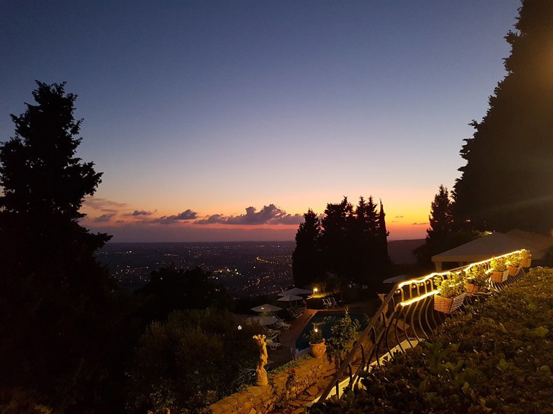 Rimasti impressionati dallo splendido panorama " da mozzafiato " da cui si vede tutta la costa ( isole comprese ) da Pisa fino a Livorno e alcuni punti anche il lago di Massaciuccoli, abbiamo deciso io e mia moglie di organizzarvi un evento x noimolto importante in questo luogo magico. Ci siamo quindi " appoggiati " al ristorante presente nel l'agriturismo a gestione famigliare affidandoci in toto al gestore persona disponibilissima e gentilissima e alle mani esperte in cucina della sua Sig.a. È andato benissimo, alla grande, siamo stati divinamente, era tutto squisito con un buonissimo rapporto qualità prezzo. Abbiamo iniziato con antipasti misti tipici toscani per passare poi a 2 portate di primi, trofie allo speck e pachino, risotto ai funghi porcini ( buonissimo ) come secondo invece filetto di mailino di cinta senese al forno con patate duchessa e insalata mista, poi macedonia di frutta fresca e infine panna cotta ai frutti di bosco o al cioccolato naturalmente acqua vino caffè e ammazzacaffe Da ritornarci sicuramente