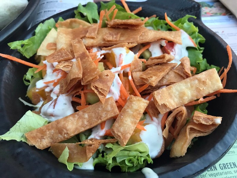 In questo locale apprezzo il.menu fotografico attestante alla realtà. Sulla qualità del cibo è insindacabile perché franchising ma sull'organizzazione davvero ottima. Ranchero wrap: tortilla di grano farcita con cotoletta di pollo pantaloni, pomodori secchi, scaglie di parmigiano reggiano, lattuga e salsa OWW. Sumero salad: insalatadi mango, avocado, pomodoro, menta, carote, salice cream e cornachos (tortillas di grano dorate). Tempi di attesa: Si ha la possibilità di sedersi dentro o fuori. Staff Personale cordiale e attento. Ampio spazio esterno per posteggiare.