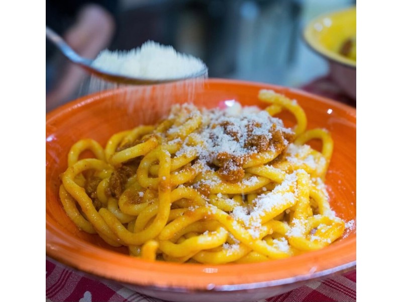 Il servizio è consono, la location è caratteristica e locale. Consiglio solo di migliorare la stabilità dei tavoli alti di legno che si trovano appena fuori rispetto all'entrata. Io e il mio compagno di viaggio abbiamo ordinato 1 pacchero al ragù di cinghiale e 1fusillo al ragù bolognese: entrambi erano saporiti e gustosi!