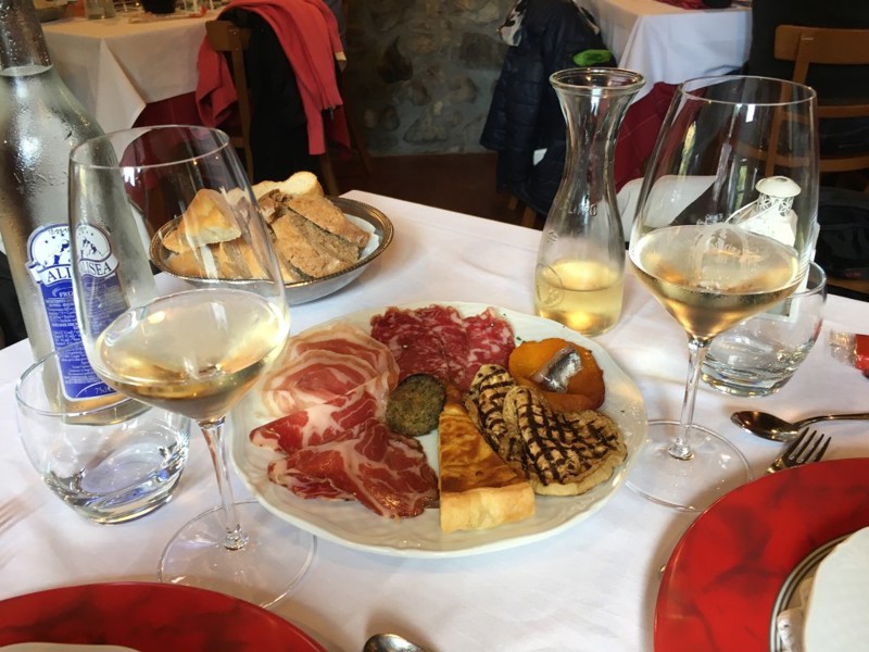 Ottimo ed abbondante antipasto di squisiti salumi, dove il famoso crudo insaccato di Varzi ha dato il meglio di sé, assieme al lardo condito con pepe e limone, la pancetta e la coppa. Abbiamo preso due eccellenti e saporiti pisarei e fasò che ci hannoportato le gentilissime cameriere, mamma e figlia, sempre attente e sul pezzo. Una Bonarda Adorno impeccabile e due dessert, il tutto servito nel minuscolo giardinetto esterno, che aggiunge qualche coperto alle due salette, a piano terra e al primo piano. Tutto gradito, prezzo adeguato, forse avrei gradito una piccola entrata per scaldare i motori, in una domenica leggermente disturbata dalla partenza proprio fuori dal ristorante di una prova del rally di Varzi.